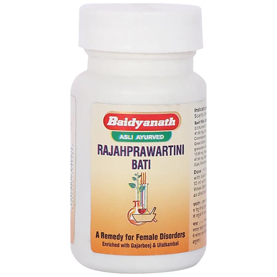 Baidyanath Rajahprawartini Bati is a traditional Ayurvedic formulation that supports women’s reproductive health and helps regulate the menstrual cycle naturally. Known for its herbal blend, Baidyanath Rajahprawartini Bati aids in balancing hormones, relieving discomfort, and promoting overall wellness in women. Trusted for its effectiveness, it is a natural choice for maintaining feminine health.