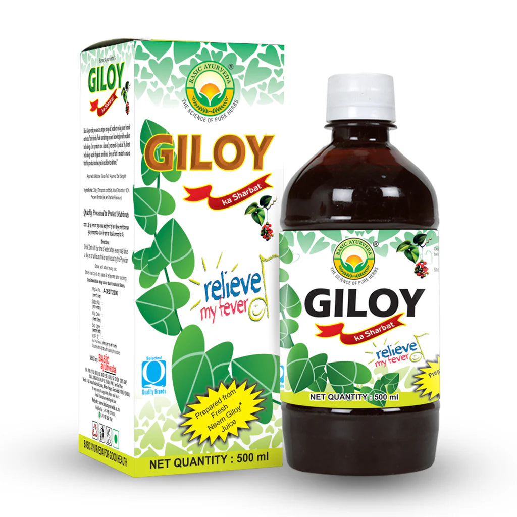 - Basic Ayurveda Giloy Ka Sharbat is effective in influenza (viral infection), cough & cold. It is an immunity modulator and builds a strong body immune system. It is also beneficial in all kinds of fever. Basic Ayurveda Giloy ka tonic is prepared from in a hygienic environment.