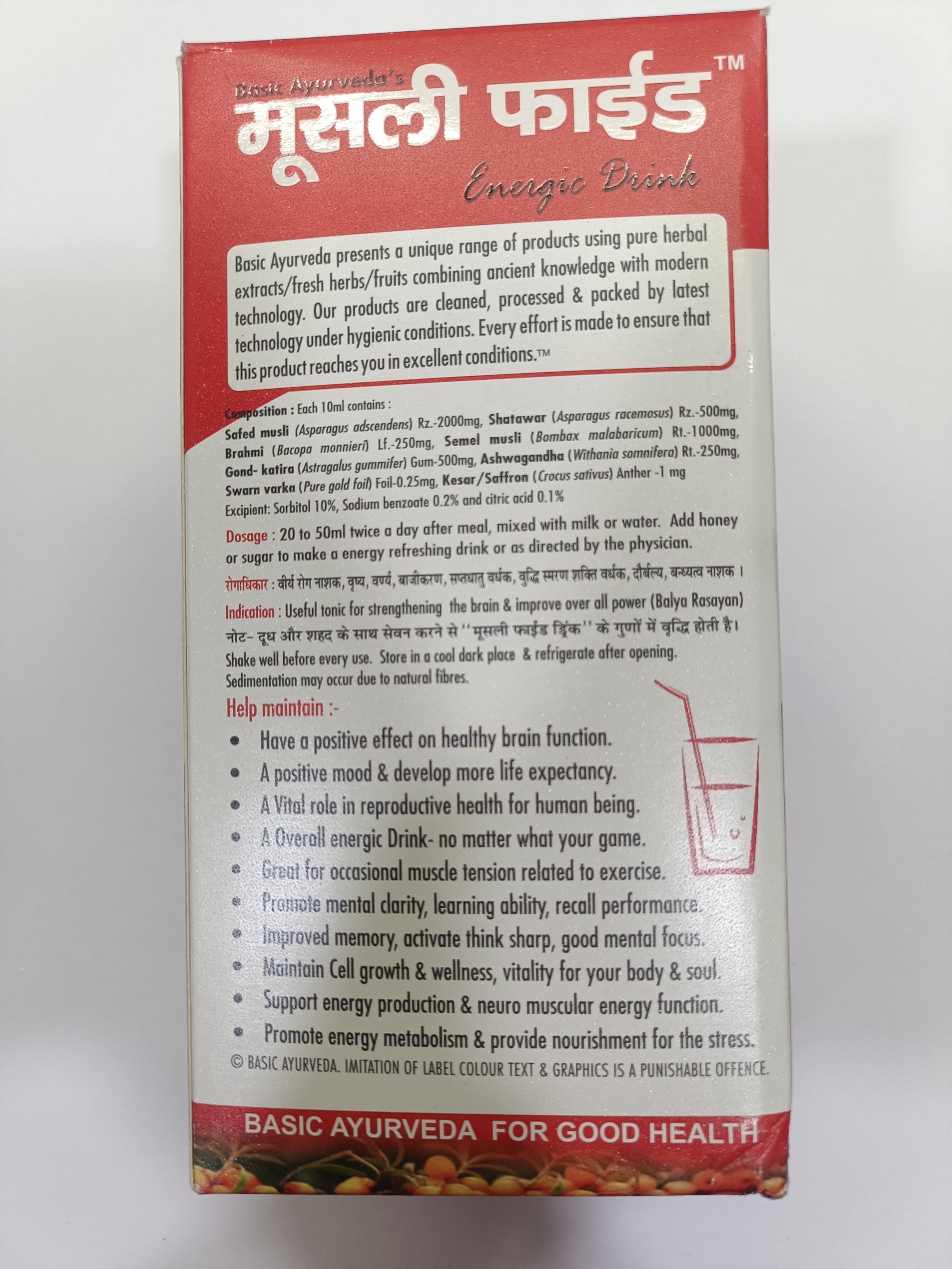 Basic Ayurveda Musli Fied Energetic Drink 500ml – Energy & Brain Power Booster