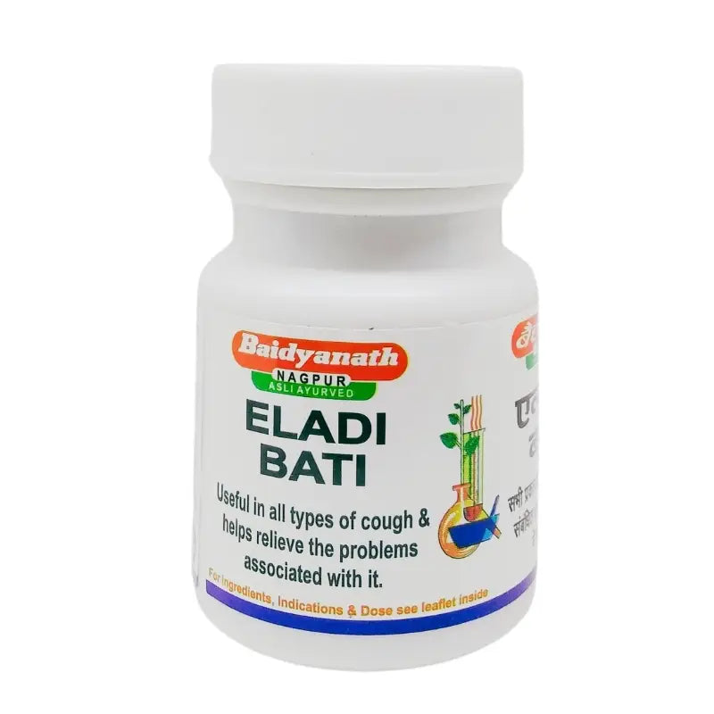 Eladi Bati by Baidyanath is a trusted herbal remedy designed to alleviate cough and related respiratory issues. Formulated with traditional ingredients, it supports respiratory health by soothing irritation and promoting clear breathing. Ideal for those seeking natural relief from cough symptoms, this preparation helps address discomfort associated with respiratory tract conditions effectively.